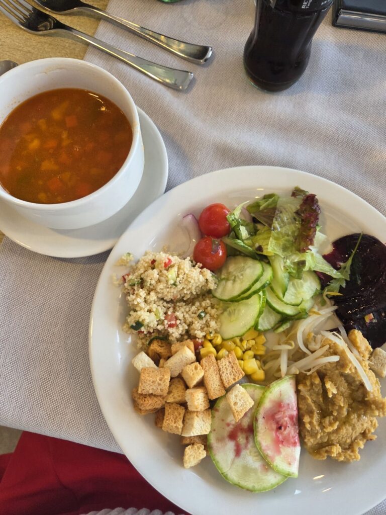 A hlavně, což mě fakt těšilo, byly k obědu a večeři velmi často zeleninové polévky. Vždy jsem si kapku dala do misky a ochutnala, aby tam nebylo mléko, které naštěstí moc nepoužívají.