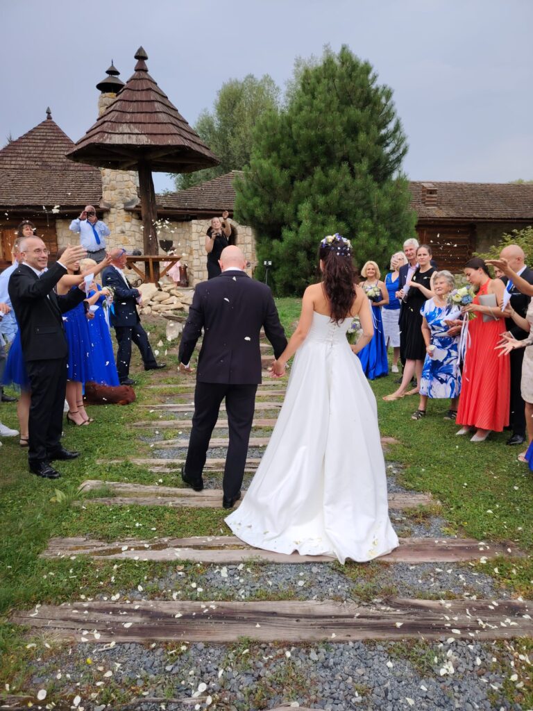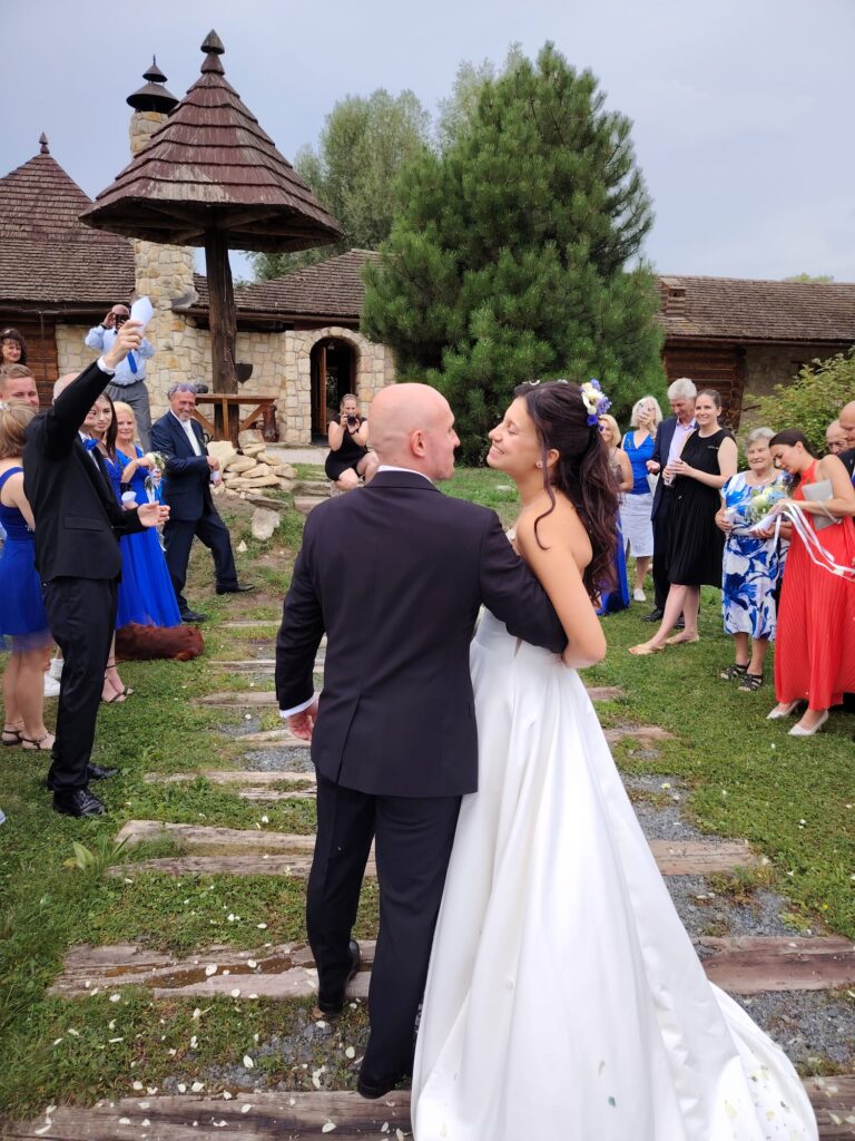 Takhle to zní hrozně jednoduše, ale to zařizování bylo opravdu něco. Naštěstí jsme na to měli 2 roky – Mates mě požádal v září 2023 a vzali jsme se až srpen 2025. Kadeřnice, dj, vizážistka, dárky pro hosty, fotografka, sweet bar, jídlo pro všechny – nemá někdo alergii a jí svíčkovou?
