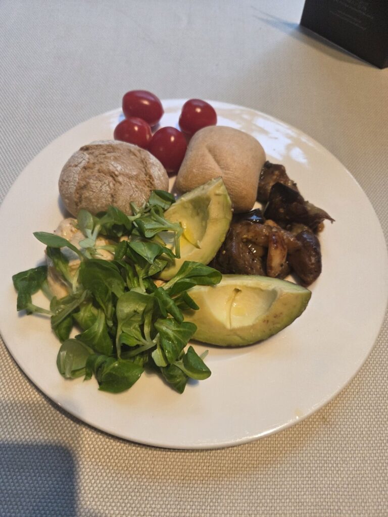Další den jsme šli ráno na snídani, kupodivu jsem si i já vybrala – dala jsem si avokádo, rajče a moc olivového oleje. K tomu pečivo a nějakou zeleninu. A jako ,,dezert“ jsem si vyžádala vegan mléko, s čímž naštěstí nebyl problém a dala jsem si ho s cereáliemi.
